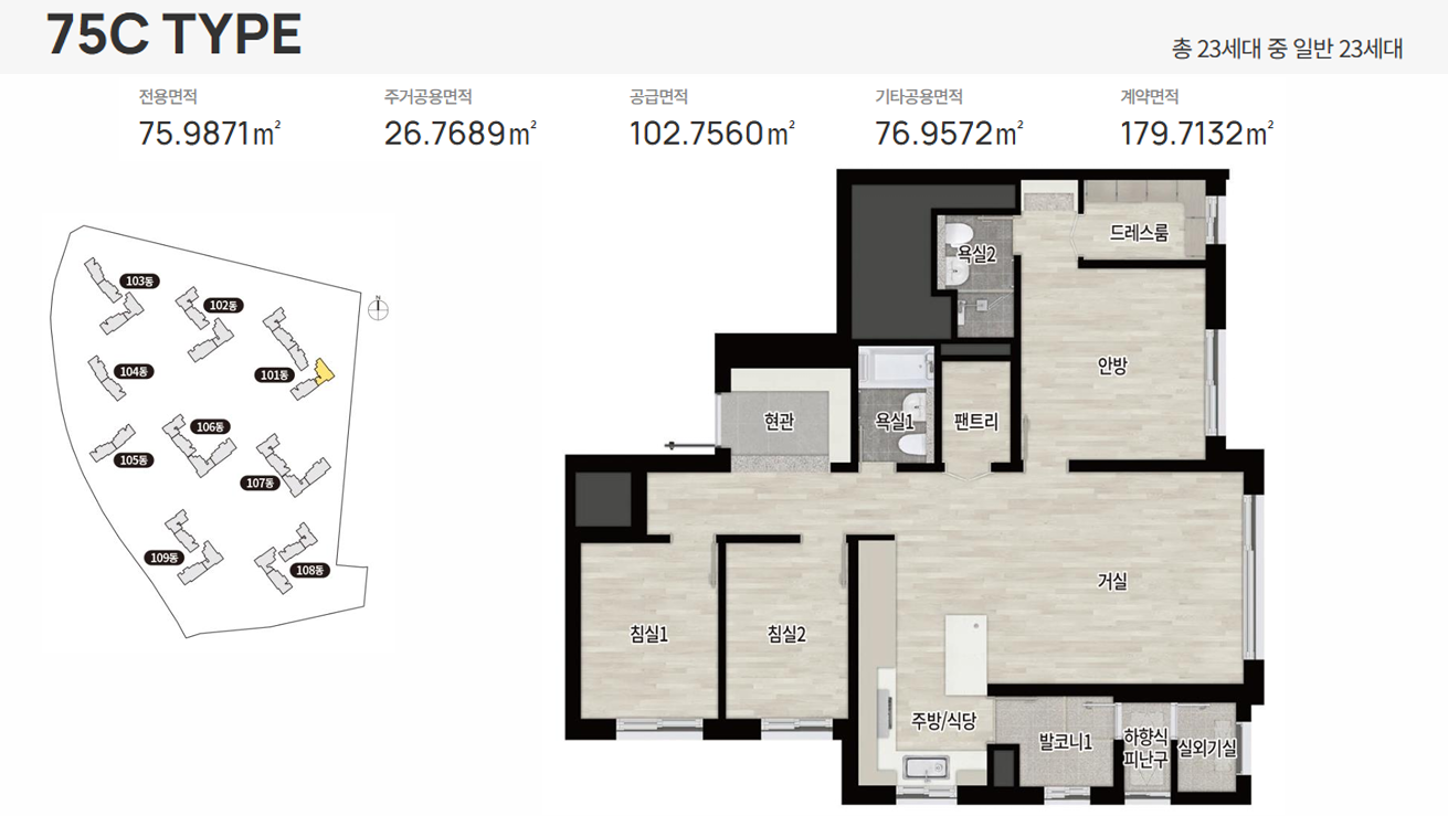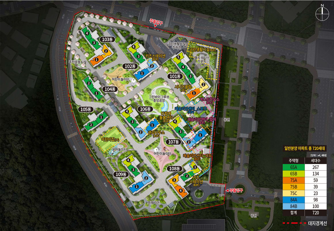 규모 : 지하4층~지상 28층, 9개동, 720세대 (전용 65㎡, 75㎡, 84㎡)