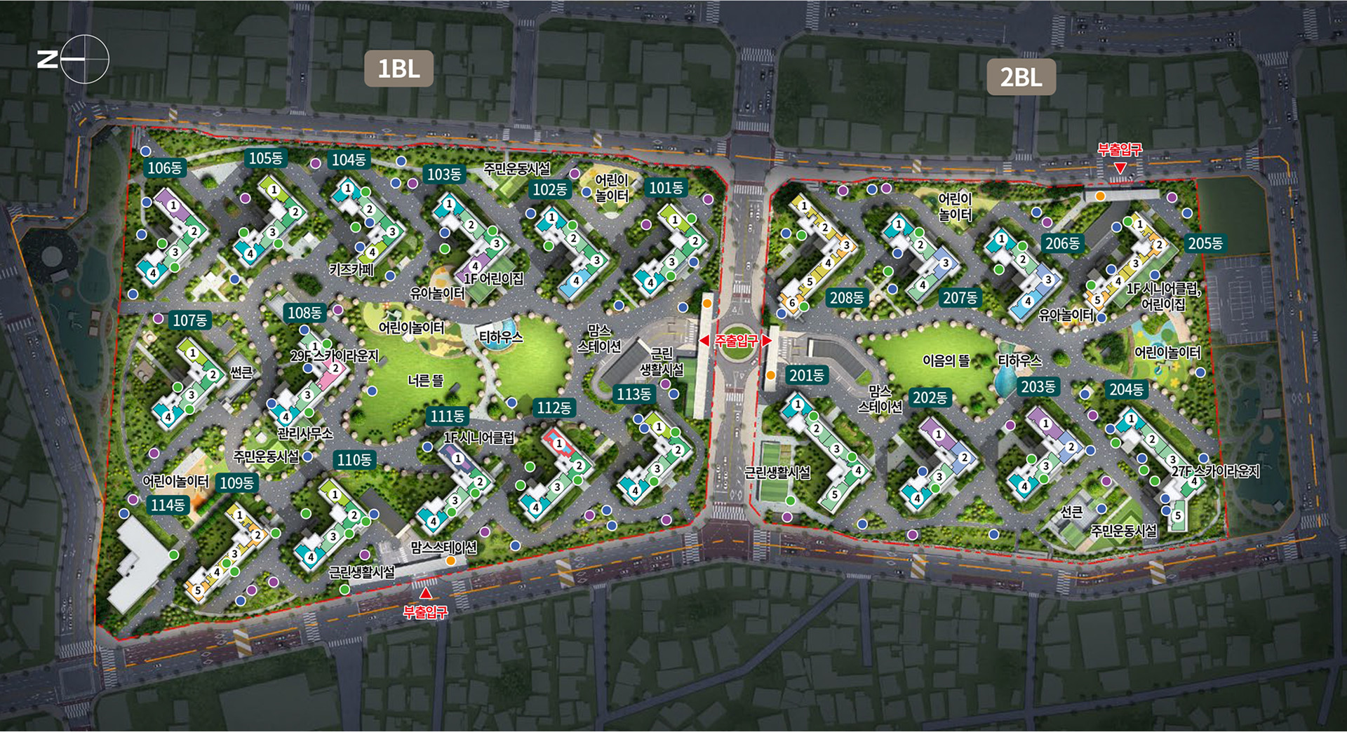 지하 2층, 지상 29층 22개동 총 2,271세대
