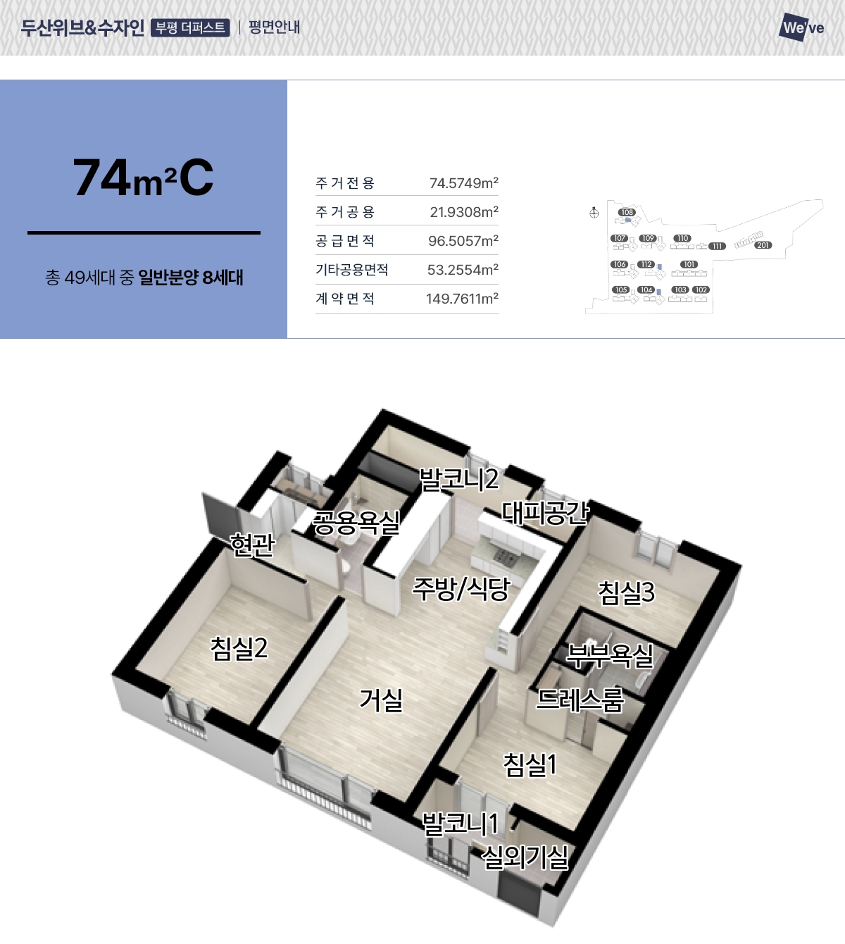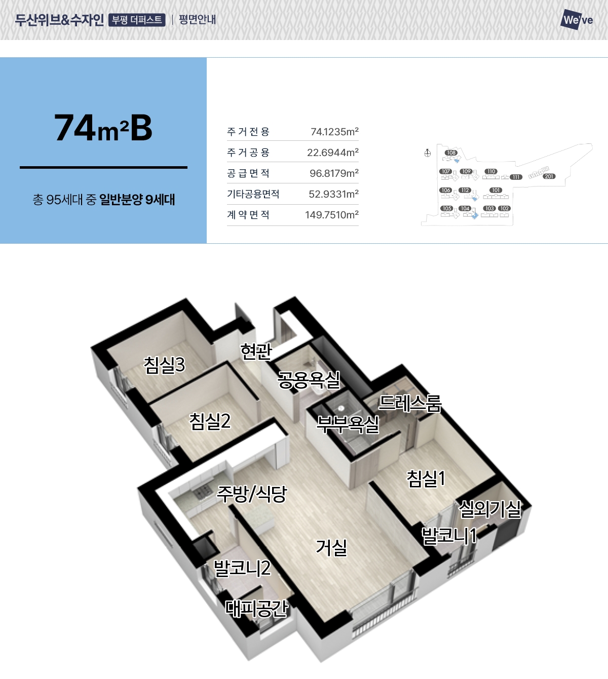 46㎡, 59㎡, 74㎡
